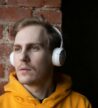 A minimalistic design featuring geometric shapes with a flag in the center that reads 'HI! ESTUDIO'. The background and objects are in muted tones, and the composition is symmetrical with circular elements.
